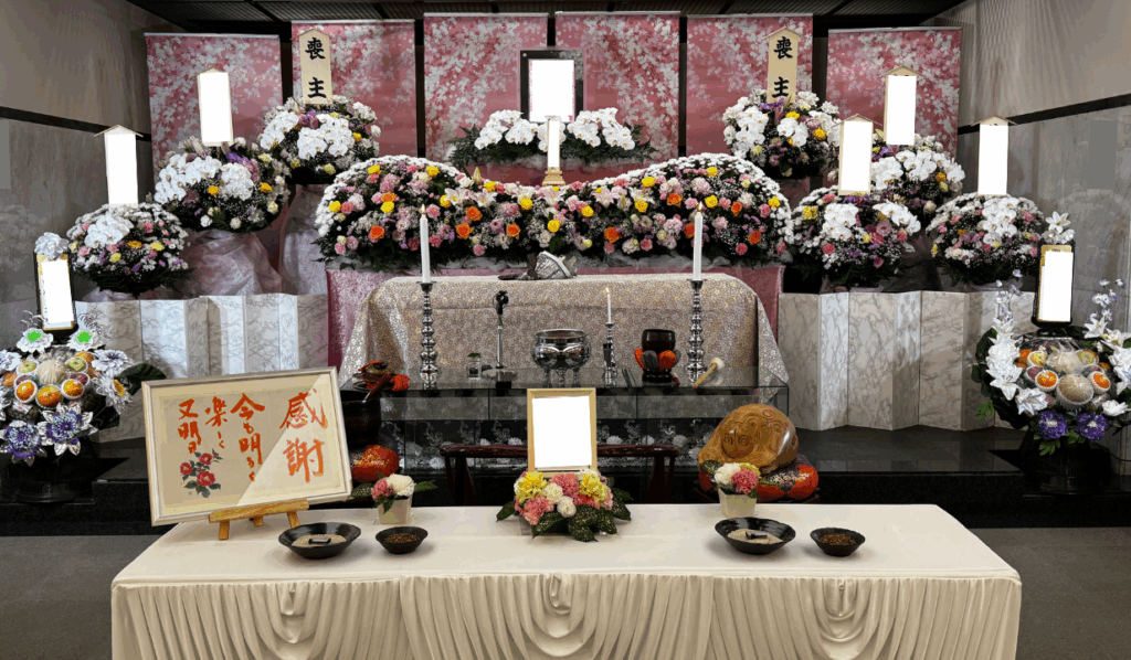 弊社ではご家族の想いに寄り添い、祭壇の大きさや装花の色合いなど、ご希望に合わせたご提案を行っております。